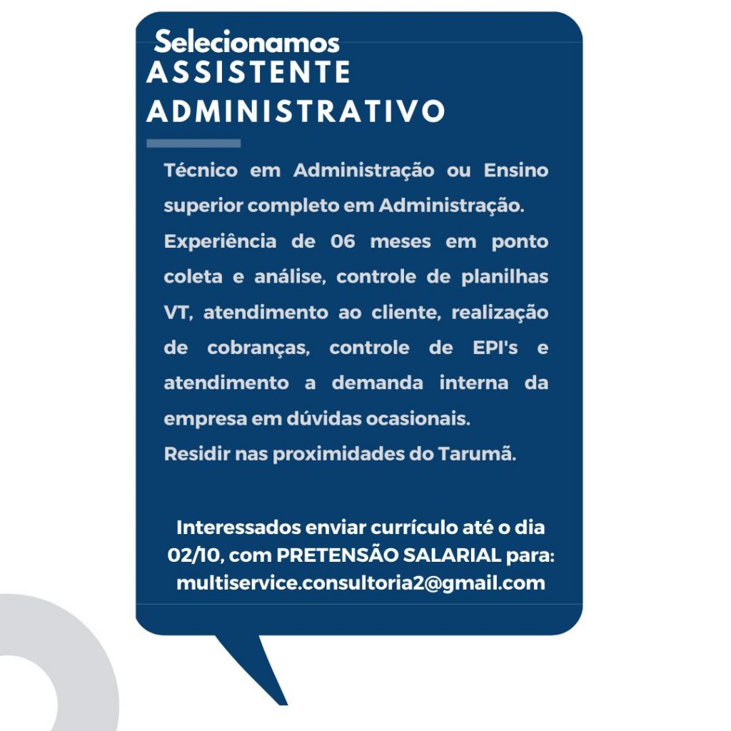 As vagas anunciadas e disponibilizadas neste site são repassadas por responsabilidade da empresa ou representante do RH. Não possuímos quaisquer vínculos com a empresa ou o anunciante. Temos o único objetivo de repassar para a população o benefício de visitar gratuitamente o nosso site, com o intuito de alcançarem o tão sonhado emprego.