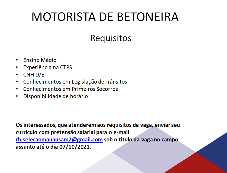 Mais informações sobre a vaga, somente por e-mail com os contratantes. Boa sorte !!!🍀