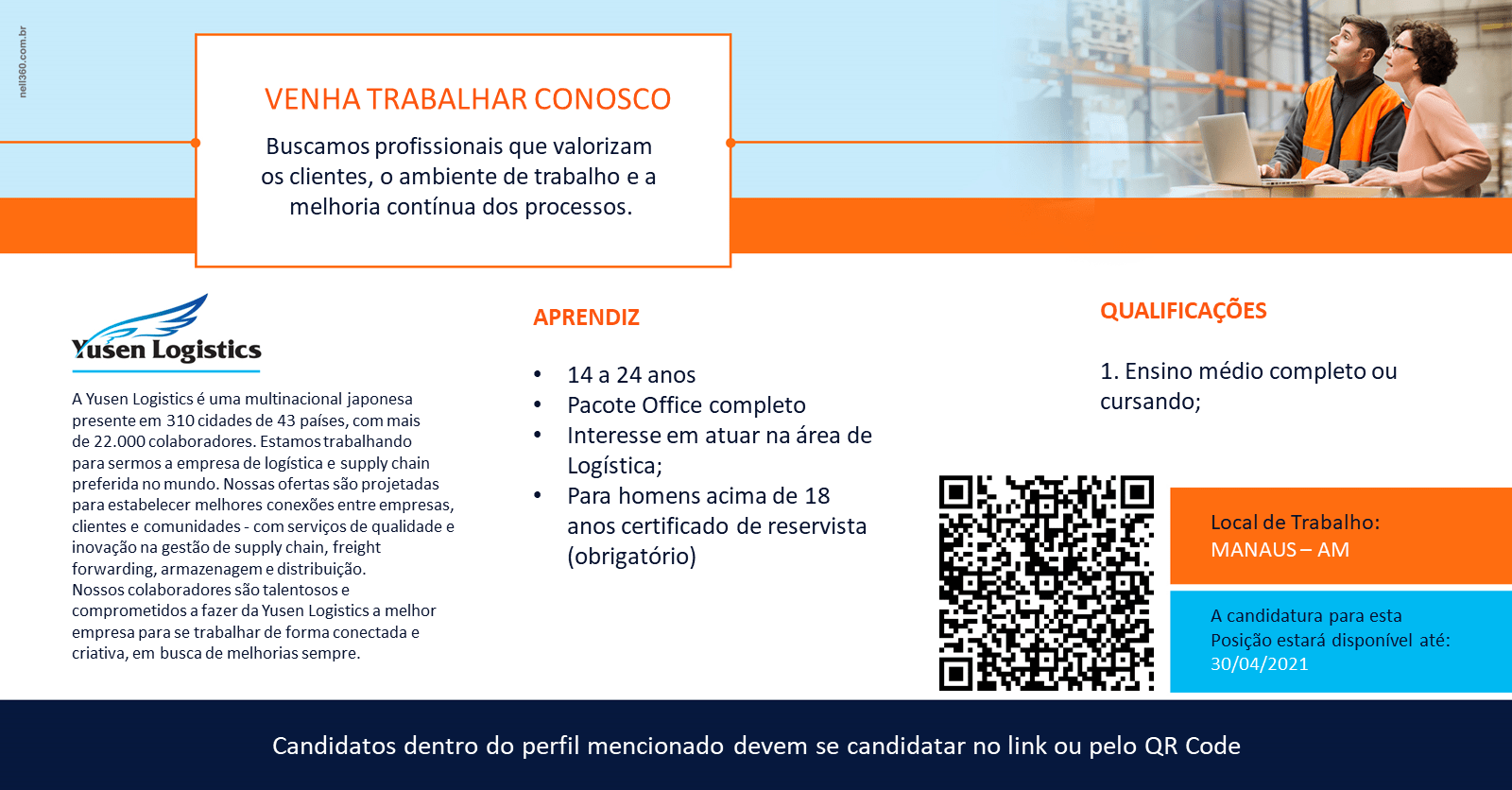A Yusen Logistics é uma multinacional japonesa presente em 310 cidades de 43 países, com mais de 22.000 colaboradores. Estamos trabalhando para sermos a empresa de logística e supply chain preferida no mundo. Nossas ofertas são projetadas para estabelecer melhores conexões entre empresas, clientes e comunidades com serviços de qualidade e inovação na gestão de supply chain, freight forwarding, armazenagem e distribuição. Nossos colaboradores são talentosos e comprometidos a fazer da Yusen Logistics a melhor empresa para se trabalhar de forma conectada e criativa, em busca de melhorias sempre.