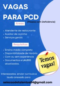 As vagas anunciadas e disponibilizadas neste site são repassadas por responsabilidade da empresa ou representante do RH. Não possuímos quaisquer vínculos com a empresa ou o anunciante. Temos o único objetivo de repassar para a população o benefício de visitar gratuitamente o nosso site, com o intuito de alcançarem o tão sonhado emprego.