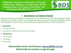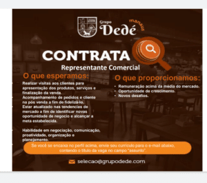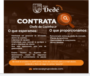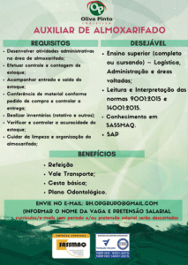 As vagas anunciadas e disponibilizadas neste site são repassadas por responsabilidade da empresa ou representante do RH. Não possuímos quaisquer vínculos com a empresa ou o anunciante. Temos o único objetivo de repassar para a população o benefício de visitar gratuitamente o nosso site, com o intuito de alcançarem o tão sonhado emprego.
