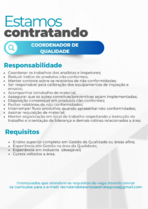 As vagas anunciadas e disponibilizadas neste site são repassadas por responsabilidade da empresa ou representante do RH. Não possuímos quaisquer vínculos com a empresa ou o anunciante. Temos o único objetivo de repassar para a população o benefício de visitar gratuitamente o nosso site, com o intuito de alcançarem o tão sonhado emprego.
