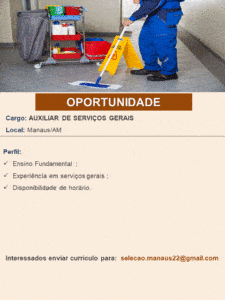 As vagas anunciadas e disponibilizadas neste site são repassadas por responsabilidade da empresa ou representante do RH. Não possuímos quaisquer vínculos com a empresa ou o anunciante. Temos o único objetivo de repassar para a população o benefício de visitar gratuitamente o nosso site, com o intuito de alcançarem o tão sonhado emprego.