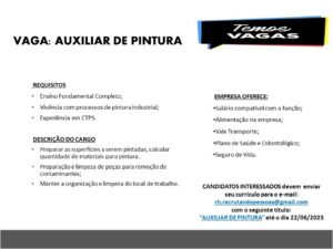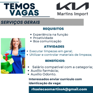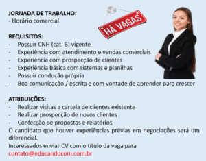 As vagas anunciadas e disponibilizadas neste site são repassadas por responsabilidade da empresa ou representante do RH. Não possuímos quaisquer vínculos com a empresa ou o anunciante. Temos o único objetivo de repassar para a população o benefício de visitar gratuitamente o nosso site, com o intuito de alcançarem o tão sonhado emprego.