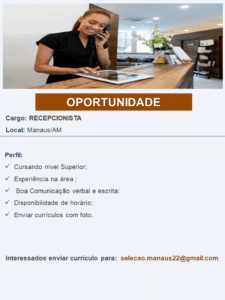 As vagas anunciadas e disponibilizadas neste site são repassadas por responsabilidade da empresa ou representante do RH. Não possuímos quaisquer vínculos com a empresa ou o anunciante. Temos o único objetivo de repassar para a população o benefício de visitar gratuitamente o nosso site, com o intuito de alcançarem o tão sonhado emprego.