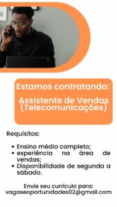 As vagas anunciadas e disponibilizadas neste site são repassadas por responsabilidade da empresa ou representante do RH. Não possuímos quaisquer vínculos com a empresa ou o anunciante. Temos o único objetivo de repassar para a população o benefício de visitar gratuitamente o nosso site, com o intuito de alcançarem o tão sonhado emprego.