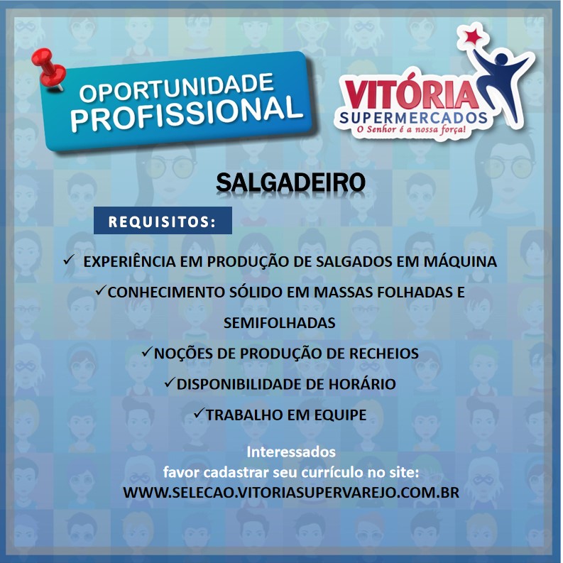 As vagas anunciadas e disponibilizadas neste site são repassadas por responsabilidade da empresa ou representante do RH. Não possuímos quaisquer vínculos com a empresa ou o anunciante. Temos o único objetivo de repassar para a população o benefício de visitar gratuitamente o nosso site, com o intuito de alcançarem o tão sonhado emprego.