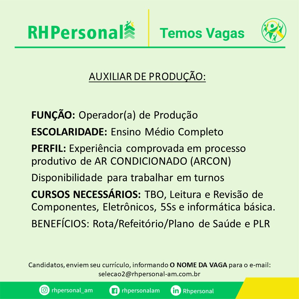 Empresas estão recrutando novos profissionais para compor seu quadro de funcionários… – Emprego Day – AM