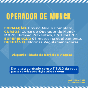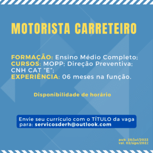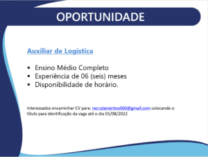 As vagas anunciadas e disponibilizadas neste site são repassadas por responsabilidade da empresa ou representante do RH. Não possuímos quaisquer vínculos com a empresa ou o anunciante. Temos o único objetivo de repassar para a população o benefício de visitar gratuitamente o nosso site, com o intuito de alcançarem o tão sonhado emprego.
