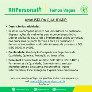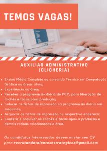 As vagas anunciadas e disponibilizadas neste site são repassadas por responsabilidade da empresa ou representante do RH. Não possuímos quaisquer vínculos com a empresa ou o anunciante. Temos o único objetivo de repassar para a população o benefício de visitar gratuitamente o nosso site, com o intuito de alcançarem o tão sonhado emprego.