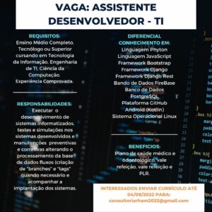 ATENÇÃO: Nunca pague nenhum valor para participar de um processo seletivo. Não compre cursos, apostilas ou serviços que prometam participação em seleção ou contratação para uma vaga. E jamais informe dados bancários, de cartão ou envie documentos por e-mail ou através de sites que não conheça.