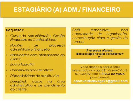 Mais informações sobre a vaga, somente por e-mail com os contratantes. Boa sorte !!!🍀