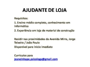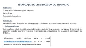 Mais informações sobre a vaga, somente por e-mail com os contratantes. Boa sorte !!!🍀
