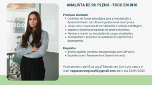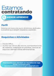 As vagas anunciadas e disponibilizadas neste site são repassadas por responsabilidade da empresa ou representante do RH. Não possuímos quaisquer vínculos com a empresa ou o anunciante. Temos o único objetivo de repassar para a população o benefício de visitar gratuitamente o nosso site, com o intuito de alcançarem o tão sonhado emprego.