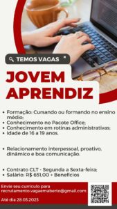 As vagas anunciadas e disponibilizadas neste site são repassadas por responsabilidade da empresa ou representante do RH. Não possuímos quaisquer vínculos com a empresa ou o anunciante. Temos o único objetivo de repassar para a população o benefício de visitar gratuitamente o nosso site, com o intuito de alcançarem o tão sonhado emprego.