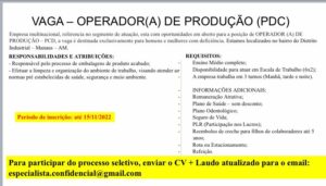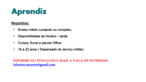 As vagas anunciadas e disponibilizadas neste site são repassadas por responsabilidade da empresa ou representante do RH. Não possuímos quaisquer vínculos com a empresa ou o anunciante. Temos o único objetivo de repassar para a população o benefício de visitar gratuitamente o nosso site, com o intuito de alcançarem o tão sonhado emprego.