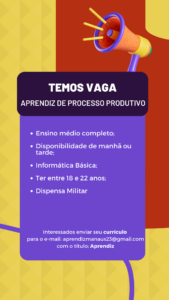 ATENÇÃO: Nunca pague nenhum valor para participar de um processo seletivo. Não compre cursos, apostilas ou serviços que prometam participação em seleção ou contratação para uma vaga. E jamais informe dados bancários, de cartão ou envie documentos por e-mail ou através de sites que não conheça.
