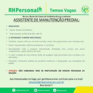 Mais informações sobre a vaga, somente por e-mail com os contratantes. Boa sorte !!!🍀