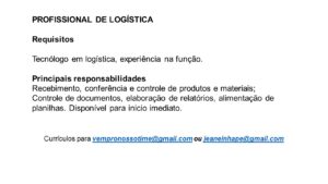 As vagas anunciadas e disponibilizadas neste site são repassadas por responsabilidade da empresa ou representante do RH. Não possuímos quaisquer vínculos com a empresa ou o anunciante. Temos o único objetivo de repassar para a população o benefício de visitar gratuitamente o nosso site, com o intuito de alcançarem o tão sonhado emprego.