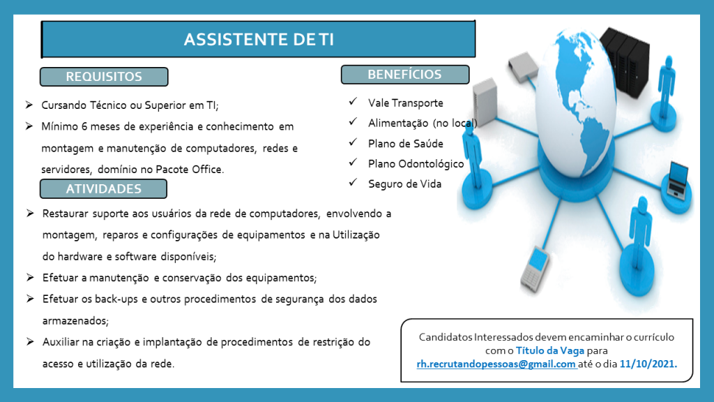 Mais informações sobre a vaga, somente por e-mail com os contratantes. Boa sorte !!!🍀