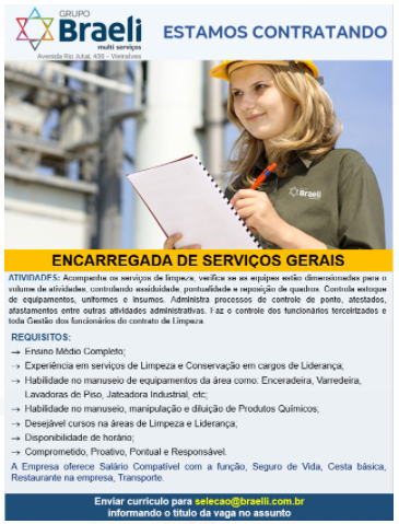 Mais informações sobre a vaga, somente por e-mail com os contratantes. Boa sorte !!!🍀
