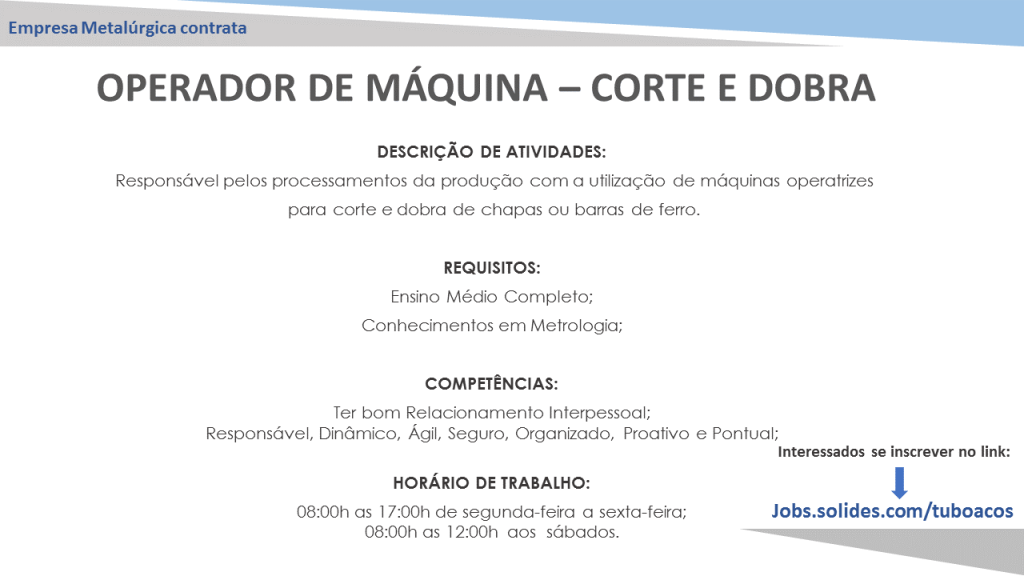 As vagas anunciadas e disponibilizadas neste site são repassadas por responsabilidade da empresa ou representante do RH. Não possuímos quaisquer vínculos com a empresa ou o anunciante. Temos o único objetivo de repassar para a população o benefício de visitar gratuitamente o nosso site, com o intuito de alcançarem o tão sonhado emprego.