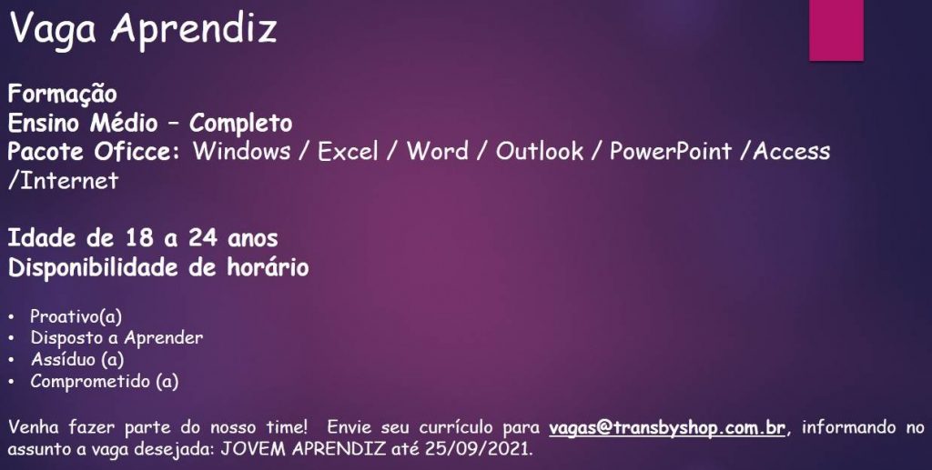 Mais informações sobre a vaga, somente por e-mail com os contratantes. Boa sorte !!!🍀