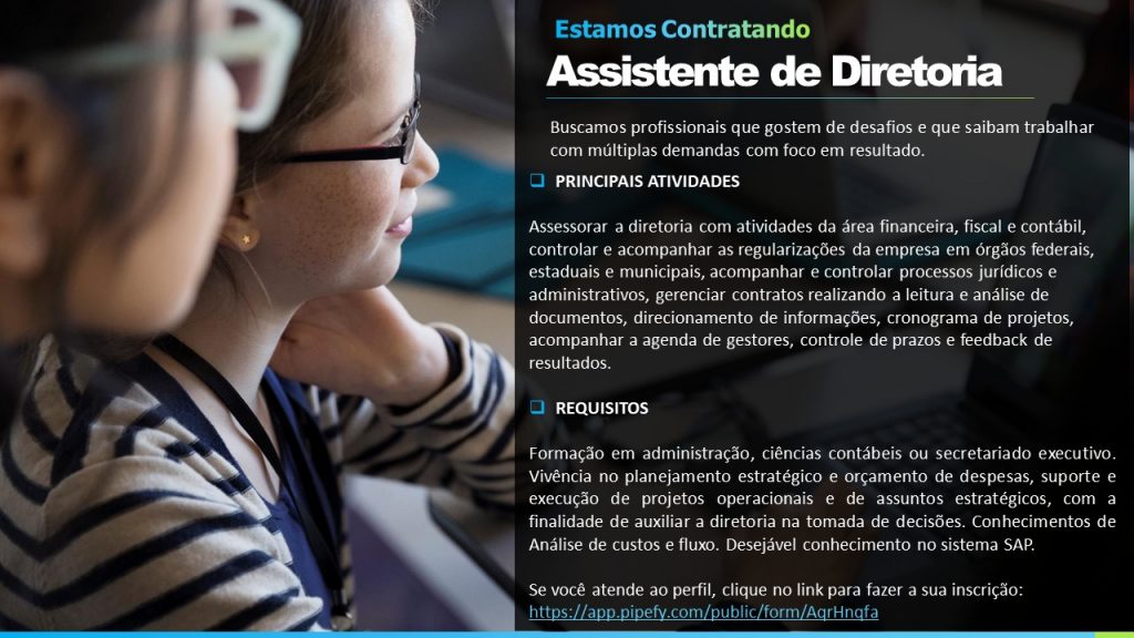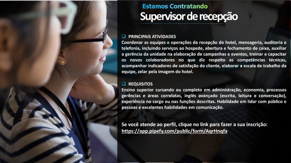 As vagas anunciadas e disponibilizadas neste site são repassadas por responsabilidade da empresa ou representante do RH. Não possuímos quaisquer vínculos com a empresa ou o anunciante. Temos o único objetivo de repassar para a população o benefício de visitar gratuitamente o nosso site, com o intuito de alcançarem o tão sonhado emprego.