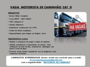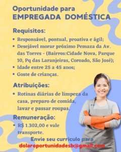As vagas anunciadas e disponibilizadas neste site são repassadas por responsabilidade da empresa ou representante do RH. Não possuímos quaisquer vínculos com a empresa ou o anunciante. Temos o único objetivo de repassar para a população o benefício de visitar gratuitamente o nosso site, com o intuito de alcançarem o tão sonhado emprego.