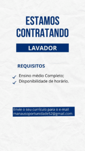 As vagas anunciadas e disponibilizadas neste site são repassadas por responsabilidade da empresa ou representante do RH. Não possuímos quaisquer vínculos com a empresa ou o anunciante. Temos o único objetivo de repassar para a população o benefício de visitar gratuitamente o nosso site, com o intuito de alcançarem o tão sonhado emprego.