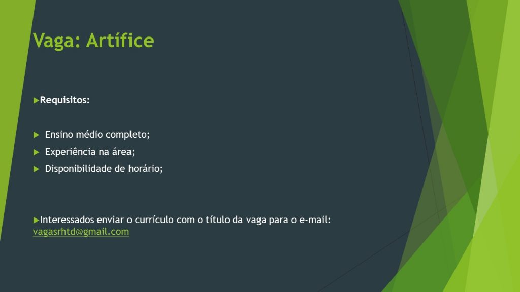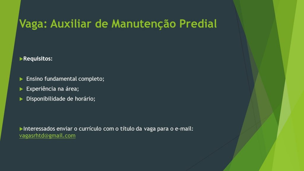 Mais informações sobre a vaga, somente por e-mail com os contratantes. Boa sorte !!!🍀