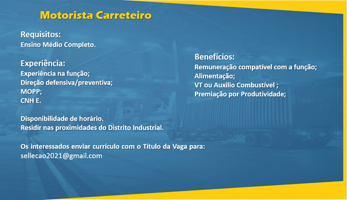 As vagas anunciadas e disponibilizadas neste site são repassadas por responsabilidade da empresa ou representante do RH. Não possuímos quaisquer vínculos com a empresa ou o anunciante. Temos o único objetivo de repassar para a população o benefício de visitar gratuitamente o nosso site, com o intuito de alcançarem o tão sonhado emprego.