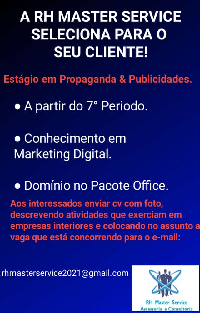 Mais informações sobre a vaga, somente por e-mail com os contratantes. Boa sorte !!!🍀