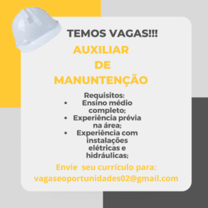 As vagas anunciadas e disponibilizadas neste site são repassadas por responsabilidade da empresa ou representante do RH. Não possuímos quaisquer vínculos com a empresa ou o anunciante. Temos o único objetivo de repassar para a população o benefício de visitar gratuitamente o nosso site, com o intuito de alcançarem o tão sonhado emprego.