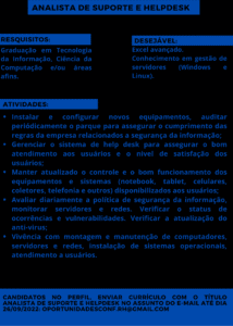 Mais informações sobre a vaga, somente por e-mail com os contratantes. Boa sorte !!!🍀