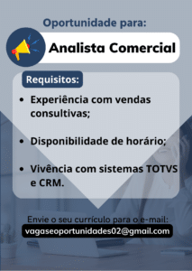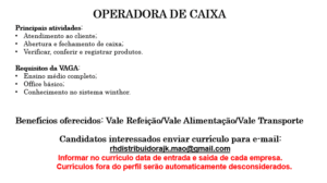 As vagas anunciadas e disponibilizadas neste site são repassadas por responsabilidade da empresa ou representante do RH. Não possuímos quaisquer vínculos com a empresa ou o anunciante. Temos o único objetivo de repassar para a população o benefício de visitar gratuitamente o nosso site, com o intuito de alcançarem o tão sonhado emprego.