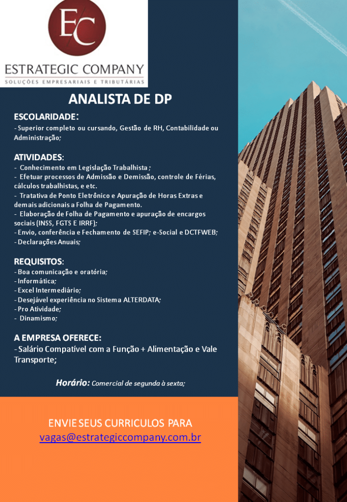 Mais informações sobre a vaga, somente por e-mail com os contratantes. Boa sorte !!!🍀