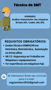 As vagas anunciadas e disponibilizadas neste site são repassadas por responsabilidade da empresa ou representante do RH. Não possuímos quaisquer vínculos com a empresa ou o anunciante. Temos o único objetivo de repassar para a população o benefício de visitar gratuitamente o nosso site, com o intuito de alcançarem o tão sonhado emprego.