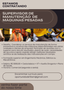 As vagas anunciadas e disponibilizadas neste site são repassadas por responsabilidade da empresa ou representante do RH. Não possuímos quaisquer vínculos com a empresa ou o anunciante. Temos o único objetivo de repassar para a população o benefício de visitar gratuitamente o nosso site, com o intuito de alcançarem o tão sonhado emprego.