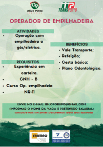 Estamos recebendo currículo para as seguintes funções: