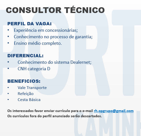 As vagas anunciadas e disponibilizadas neste site são repassadas por responsabilidade da empresa ou representante do RH. Não possuímos quaisquer vínculos com a empresa ou o anunciante. Temos o único objetivo de repassar para a população o benefício de visitar gratuitamente o nosso site, com o intuito de alcançarem o tão sonhado emprego.