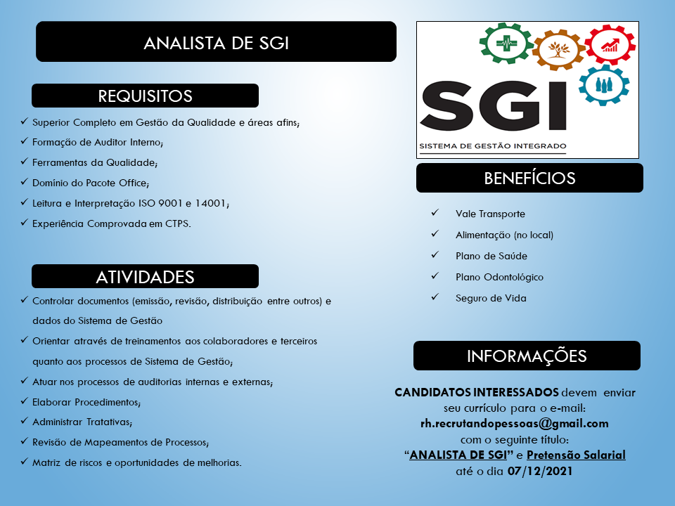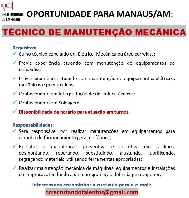 Mais informações sobre a vaga, somente por e-mail com os contratantes. Boa sorte !!!🍀