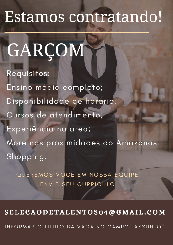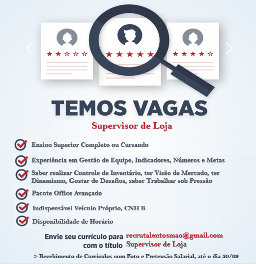 As vagas anunciadas e disponibilizadas neste site são repassadas por responsabilidade da empresa ou representante do RH. Não possuímos quaisquer vínculos com a empresa ou o anunciante. Temos o único objetivo de repassar para a população o benefício de visitar gratuitamente o nosso site, com o intuito de alcançarem o tão sonhado emprego.