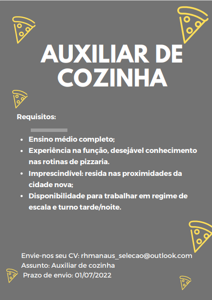 Mais informações sobre a vaga, somente por e-mail com os contratantes. Boa sorte !!!🍀