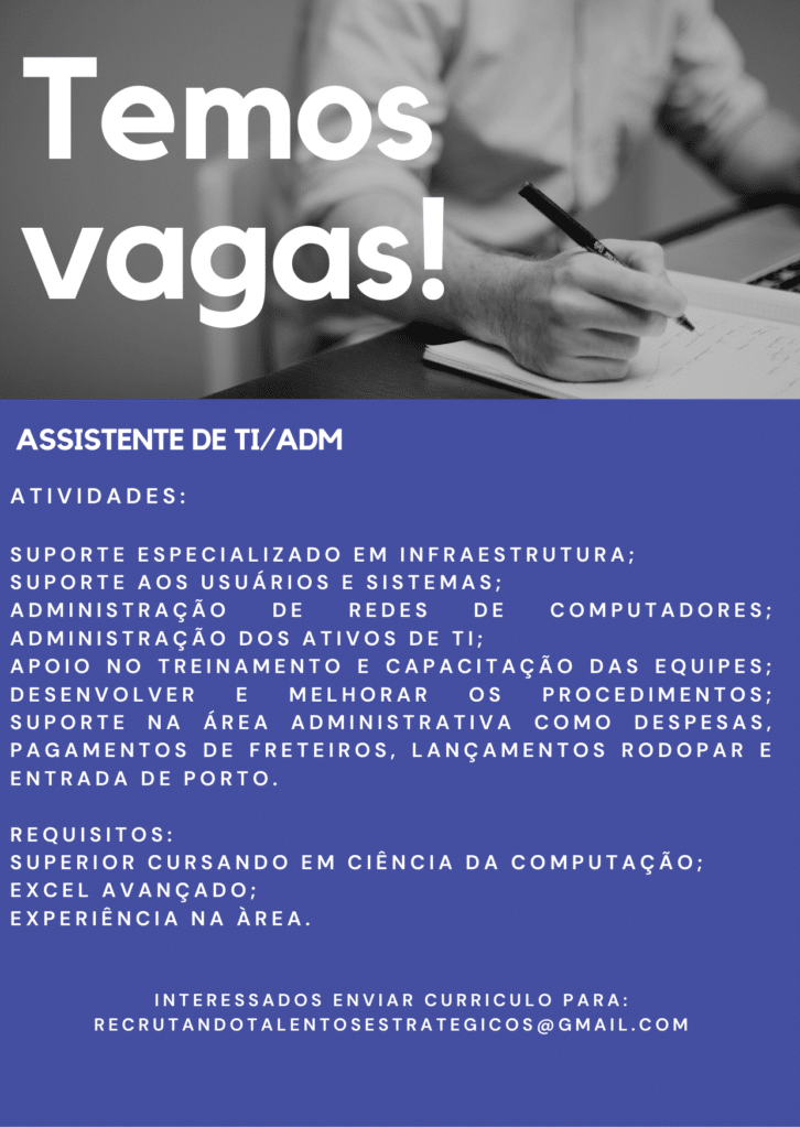 Mais informações sobre a vaga, somente por e-mail com os contratantes. Boa sorte !!!🍀