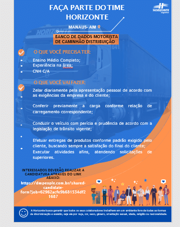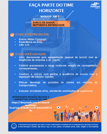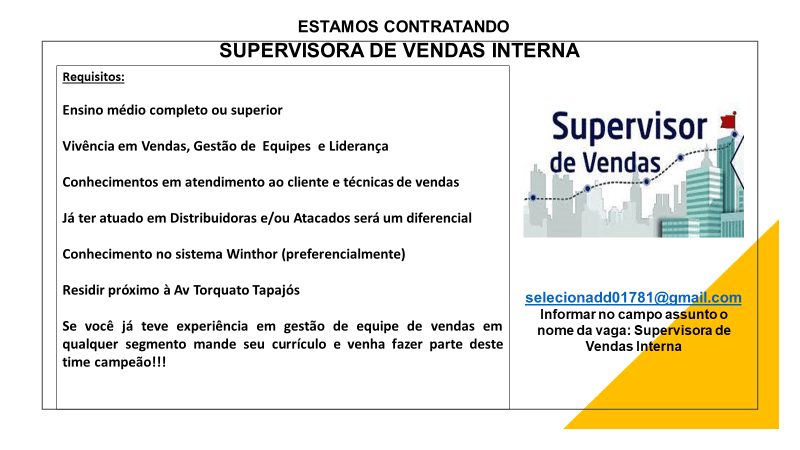As vagas anunciadas e disponibilizadas neste site são repassadas por responsabilidade da empresa ou representante do RH. Não possuímos quaisquer vínculos com a empresa ou o anunciante. Temos o único objetivo de repassar para a população o benefício de visitar gratuitamente o nosso site, com o intuito de alcançarem o tão sonhado emprego.