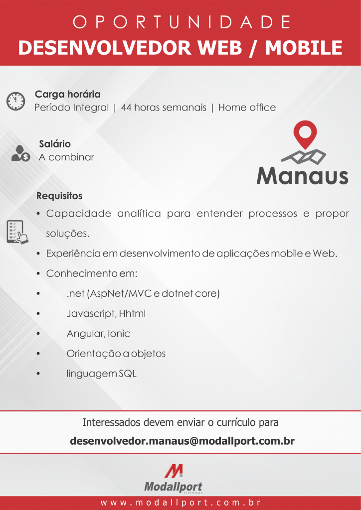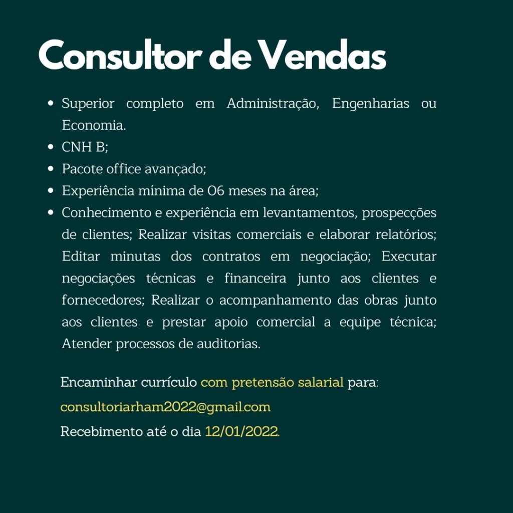 As vagas anunciadas e disponibilizadas neste site são repassadas por responsabilidade da empresa ou representante do RH. Não possuímos quaisquer vínculos com a empresa ou o anunciante. Temos o único objetivo de repassar para a população o benefício de visitar gratuitamente o nosso site, com o intuito de alcançarem o tão sonhado emprego.