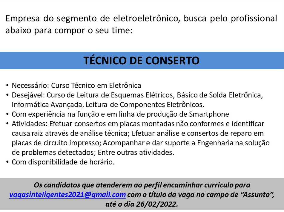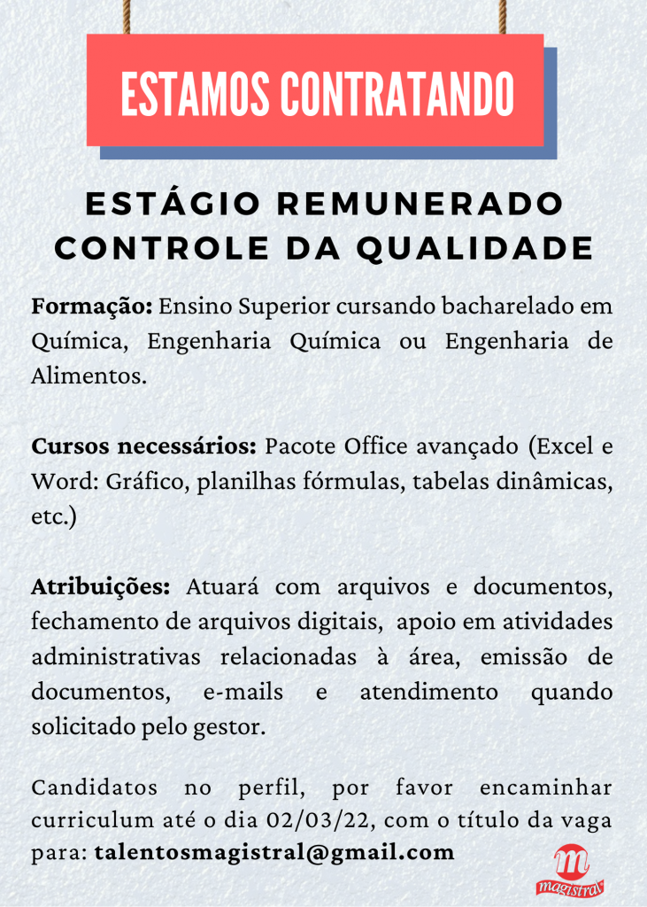 Mais informações sobre a vaga, somente por e-mail com os contratantes. Boa sorte !!!🍀