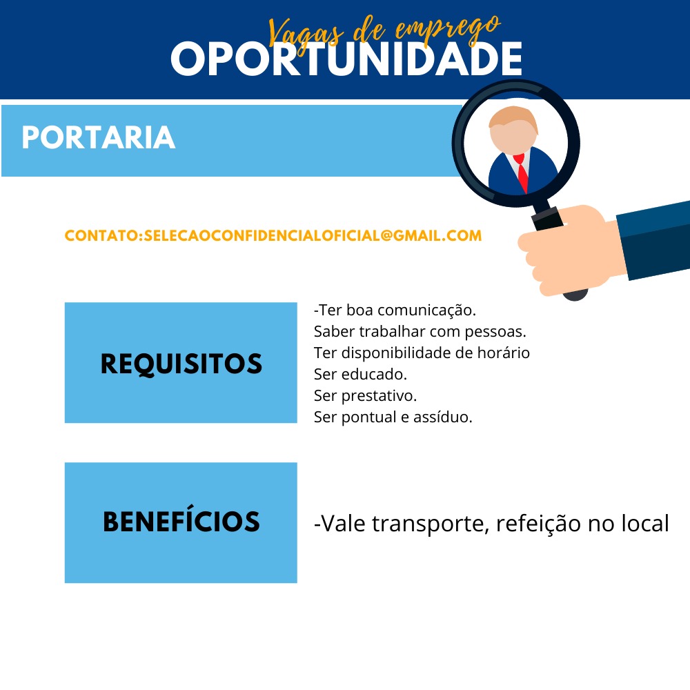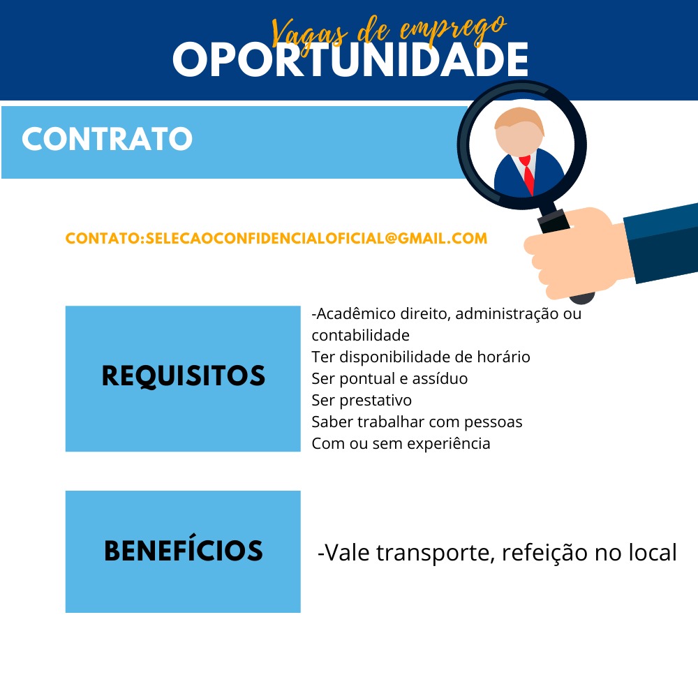 Mais informações sobre a vaga, somente por e-mail com os contratantes. Boa sorte !!!🍀
