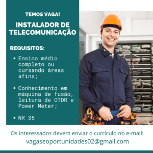 As vagas anunciadas e disponibilizadas neste site são repassadas por responsabilidade da empresa ou representante do RH. Não possuímos quaisquer vínculos com a empresa ou o anunciante. Temos o único objetivo de repassar para a população o benefício de visitar gratuitamente o nosso site, com o intuito de alcançarem o tão sonhado emprego.